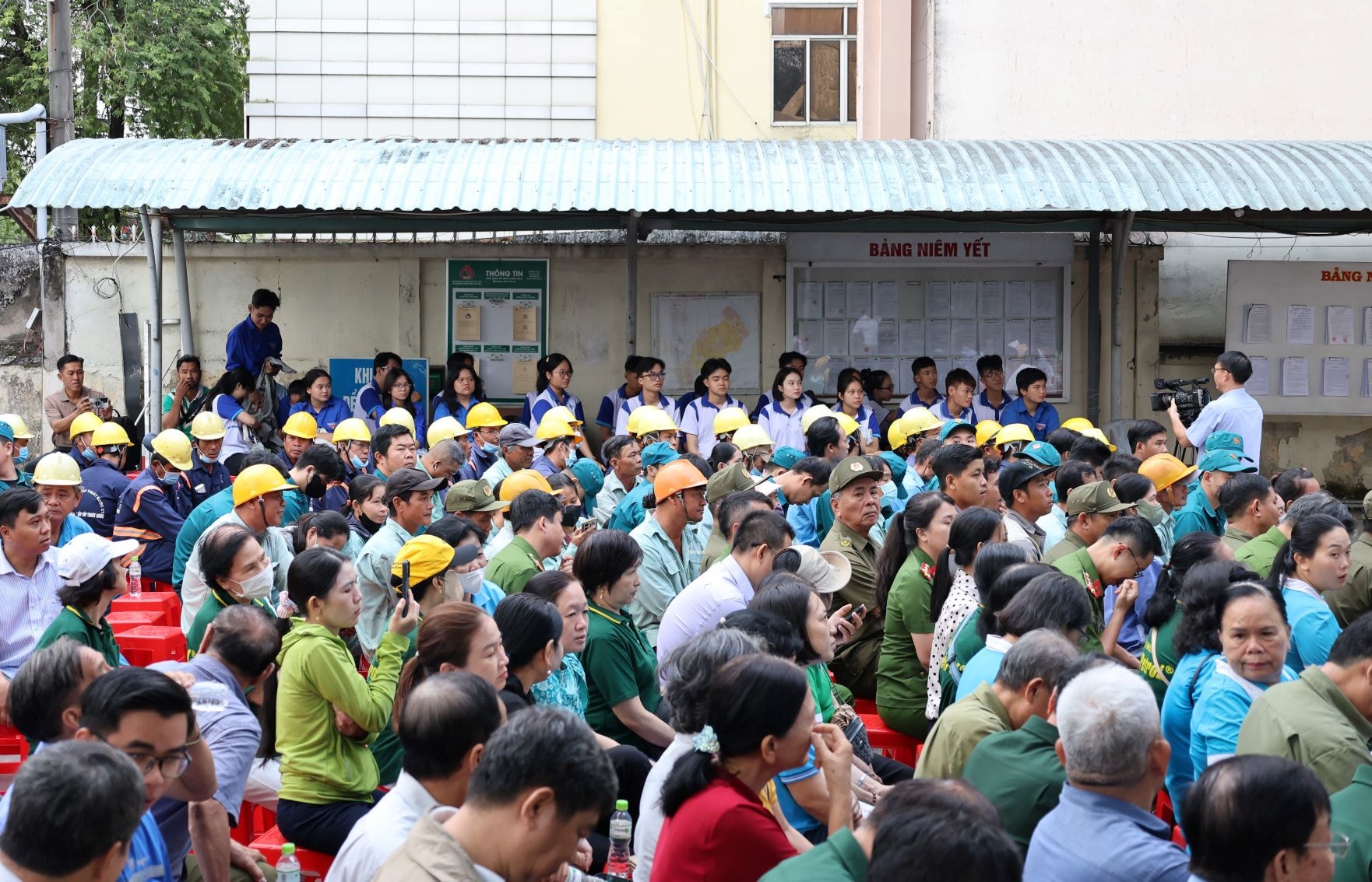 Các đại biểu tham dự lễ phát động lập lại trật tự đô thị và vệ sinh môi trường