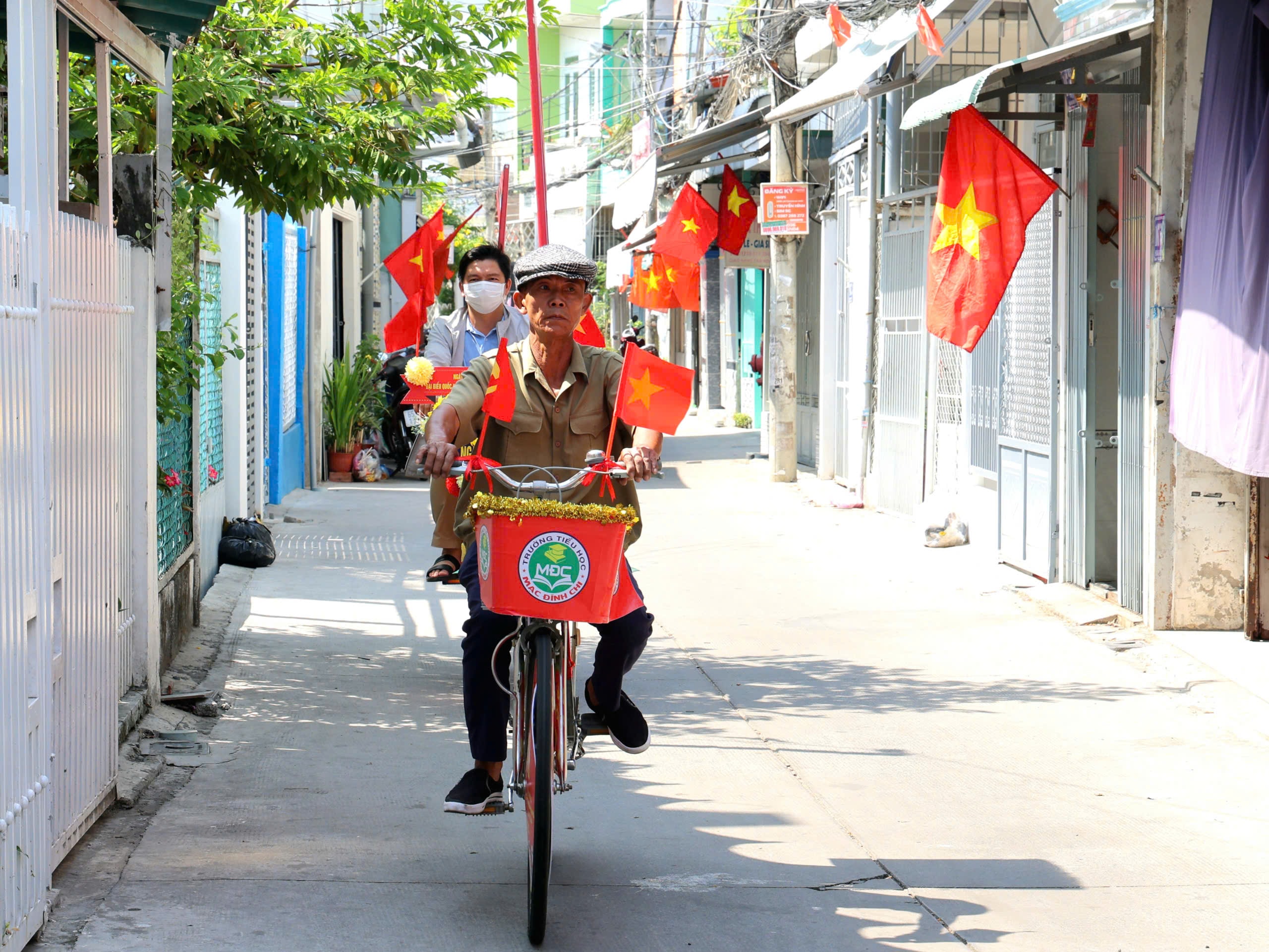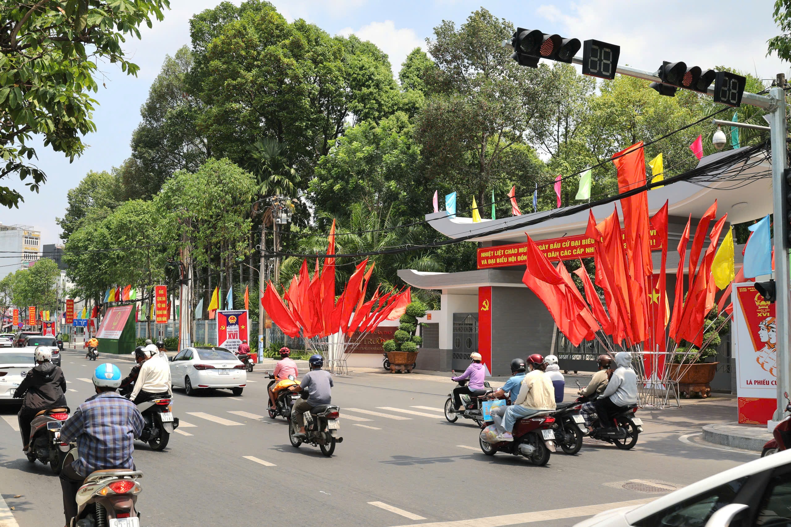 Tại nhiều khu dân cư, các tổ bầu cử, đoàn thể và người dân cùng chung tay dọn dẹp, trang trí lại khu vực bỏ phiếu. Những dãy cờ phấp phới trước từng ngôi nhà, từng con hẻm nhỏ khiến không gian đô thị thêm phần tươi mới.