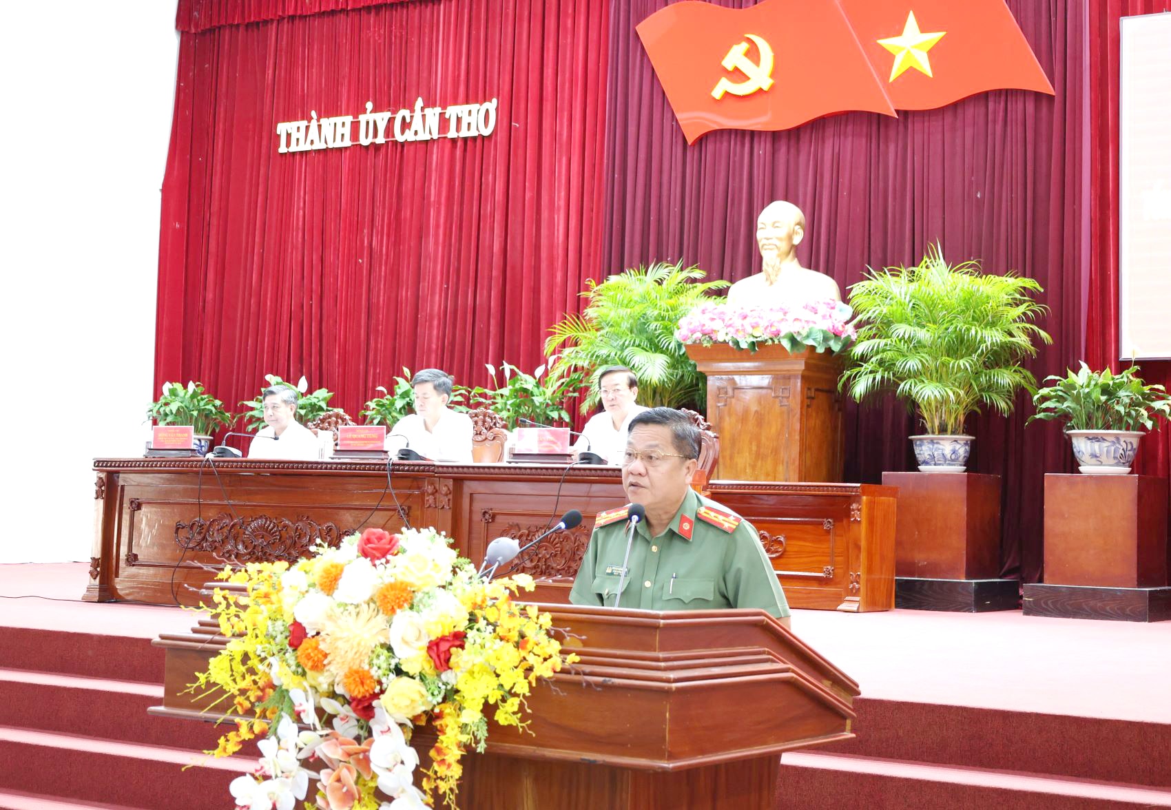 Lãnh đạo Công an TP. Cần Thơ trình bày tham luận tại Hội nghị