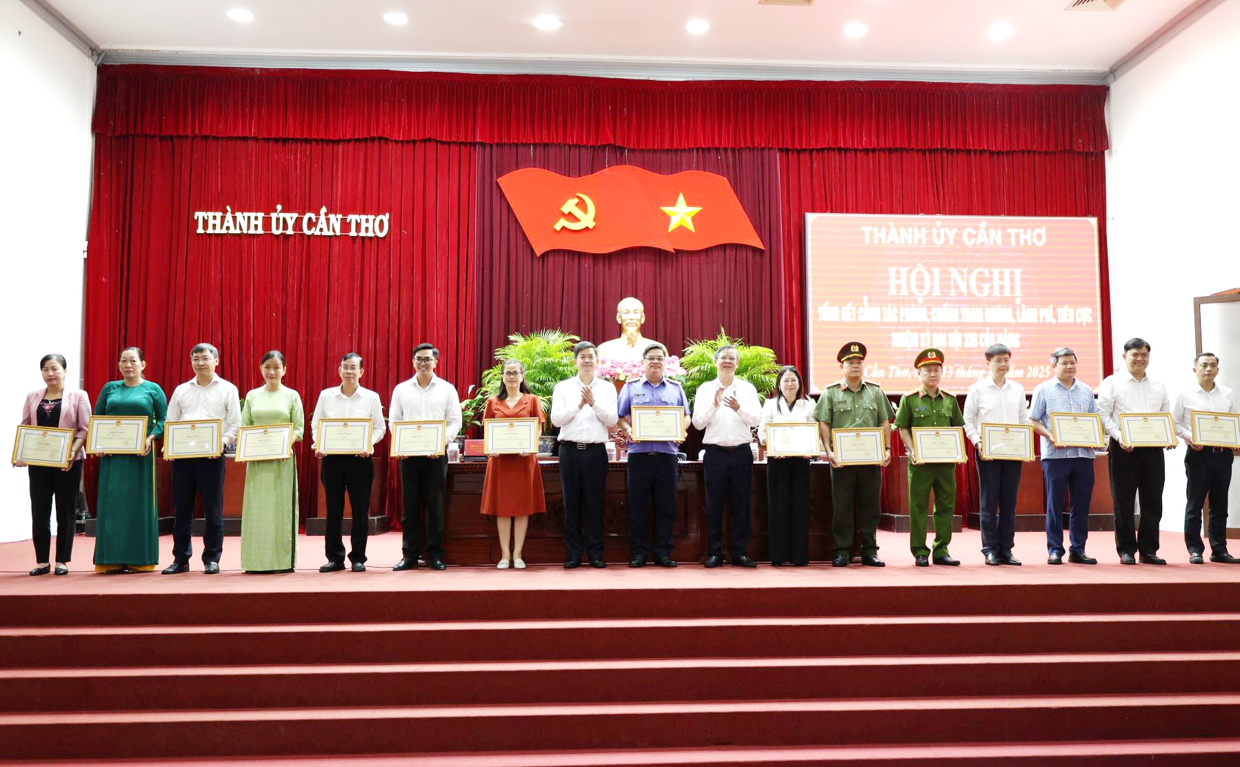 Tại hội nghị, Chủ tịch UBND TP. Cần Thơ tặng bằng khen cho 15 tập thể và 20 cá nhân có thành tích trong công tác theo dõi, báo cáo và tham mưu cho UBND thành phố đối với công tác phòng, chống tham nhũng, lãng phí, tiêu cực.