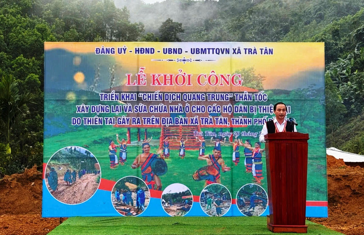 Phát biểu tại lễ khởi công, ông Nguyễn Hồng Lai - Bí thư Đảng ủy, Chủ tịch HĐND xã Trà Tân nhấn mạnh, việc triển khai “Chiến dịch Quang Trung” là hoạt động thiết thực, thể hiện sự quan tâm sâu sắc của Đảng, Nhà nước và toàn xã hội đối với đời sống Nhân dân. Mục tiêu cao nhất của chúng tôi là sớm giúp bà con có mái ấm an toàn, vững chắc, ổn định cuộc sống, yên tâm lao động sản xuất.