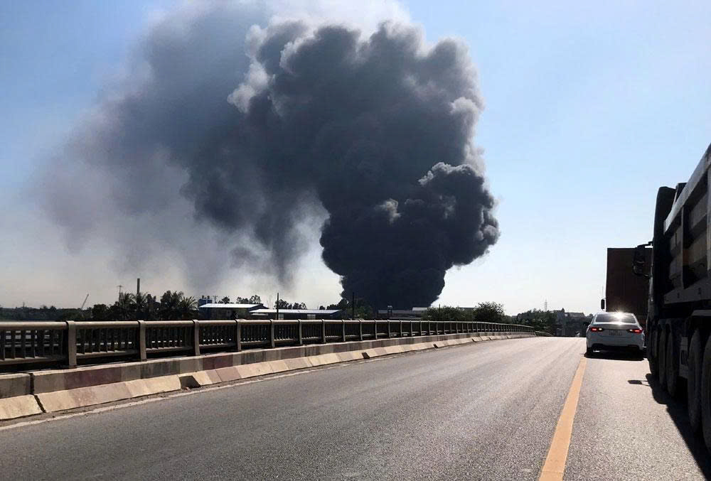 Theo quan sát của phóng viên, nhà xưởng của công ty này nằm bên mặt Quốc lộ 38B, cách cầu Tràng Thưa chừng 500m, theo hướng đi Hưng Yên. Từ xa có thể thấy cột khói đen bốc lên rất cao.