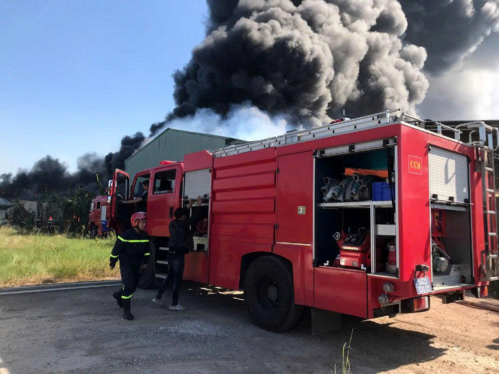 Tại hiện trường, các xe cứu hỏa tích cực làm nhiệm vụ chữa cháy. Một số xe áp sát sườn nhà xưởng để phun nước dập lửa; một xe tiếp cận cổng ra vào của công ty để khống chế đám cháy. Nguồn nước chữa cháy tuy được lấy từ ngay con kênh bên Quốc lộ 38B, song việc chữa cháy hết sức khó khăn do nhà xưởng chứa nhiều vật liệu dễ cháy, trời hanh khô, gió thổi mạnh nên đám cháy ngày càng bùng lên dữ dội. Hiện, kết cấu một số khu nhà xưởng đã biến dạng do cháy.