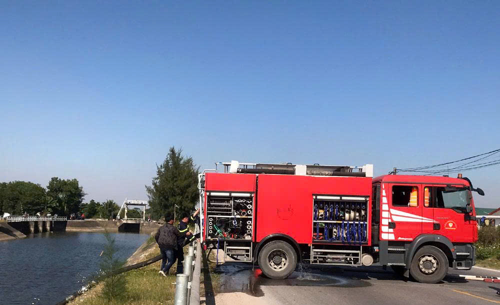 Nước được chữa cháy được lấy ngay ở con kênh phía trước công ty.
