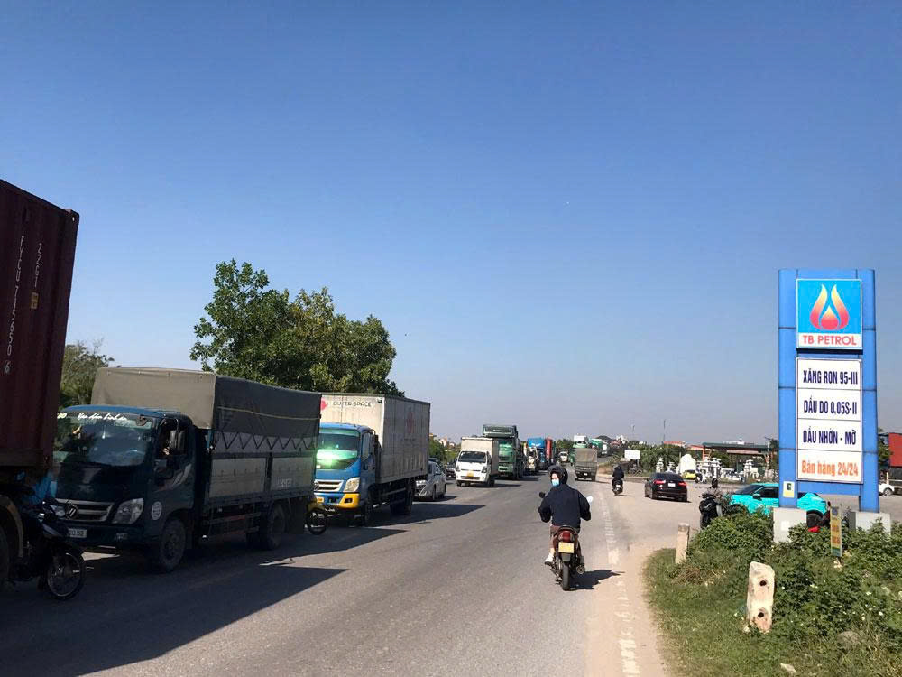Mặc dù lực lượng công an đã tiến hành phân luồng, nhưng hàng dài phương tiện vẫn xếp hàng trên đường; ô tô lưu thông theo chiều đi Hưng Yên được hướng dẫn quay đầu, chuyển hướng đi.