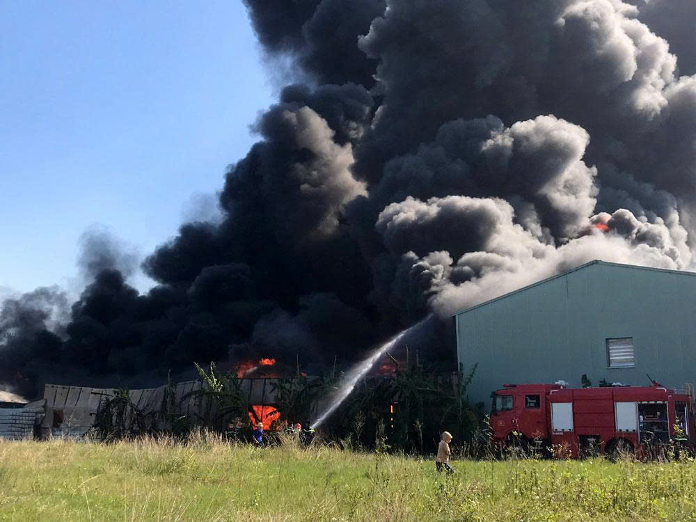 Video cháy lớn bùng phát tại một công ty sản xuất đồ nhựa ở xã Trường Tân, TP Hải Phòng.