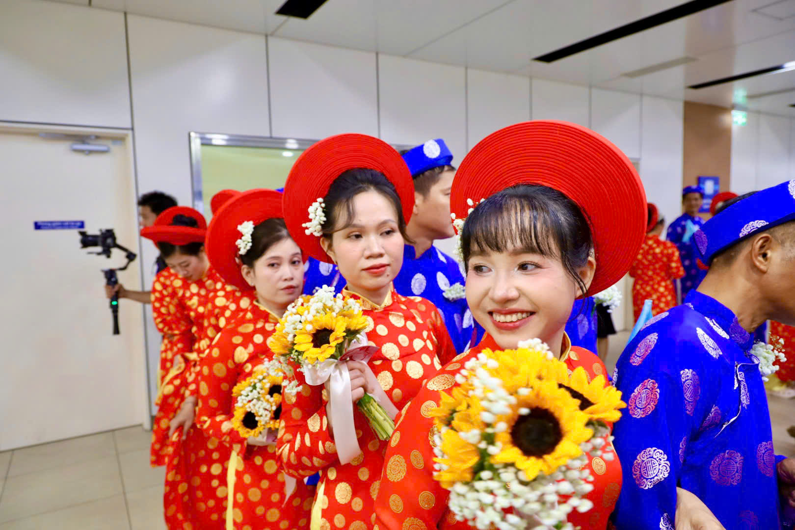 Các cặp đôi công nhân lao động trẻ rạng rỡ trong lễ cưới tập thể năm 2025 tại TP HCM