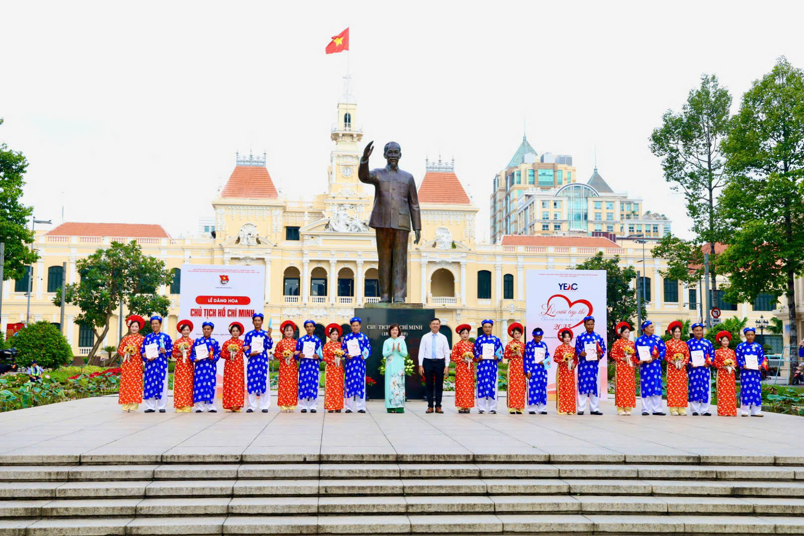 Lãnh đạo TP HCM cùng 50 cặp đôi dâng hương tại tượng đài Chủ tịch Hồ Chí Minh sáng 24-10
