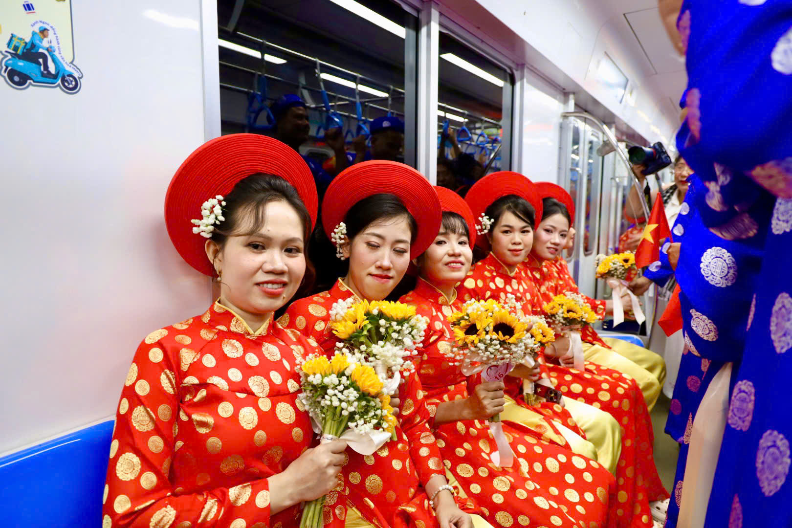 Sau khi dâng hoa tại tượng đài Chủ tịch Hồ Chí Minh, đoàn xe điện chở 100 cô dâu, chú rể di chuyển qua những tuyến đường trung tâm rồi tiếp tục bằng buýt đường sông và metro, như một hành trình tượng trưng cho "chuyến tàu hạnh phúc" của người lao động trẻ nơi đô thị.