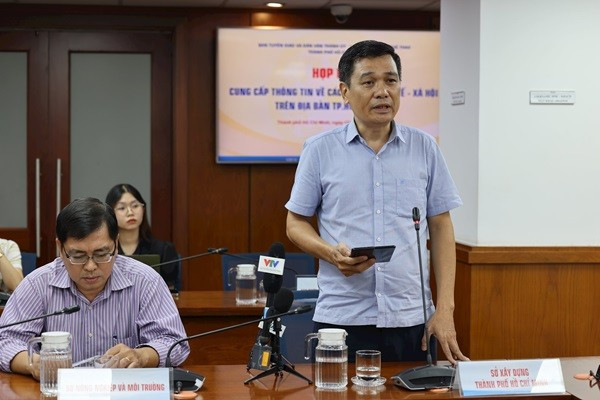 Ông Nguyễn Kiên Giang, Phó Trưởng phòng Quản lý bảo trì và khai thác công trình giao thông (Sở Xây dựng TP HCM) thông tin tại họp báo. Ảnh: Vân Phạm