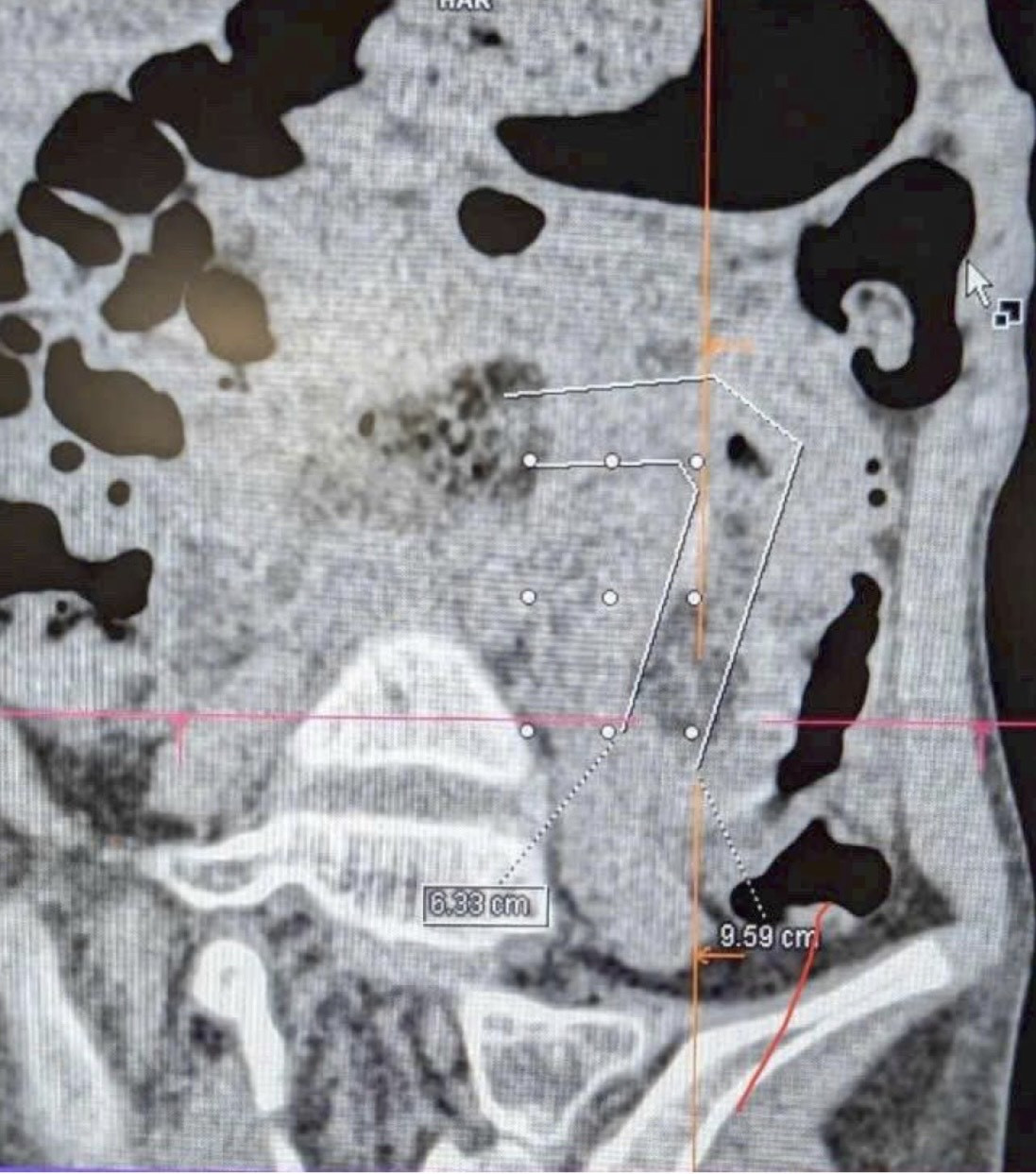 Hình ảnh CT Scan phát hiện ra búi tóc và tình trạng tắc ruột của bệnh nhân. Ảnh:FV