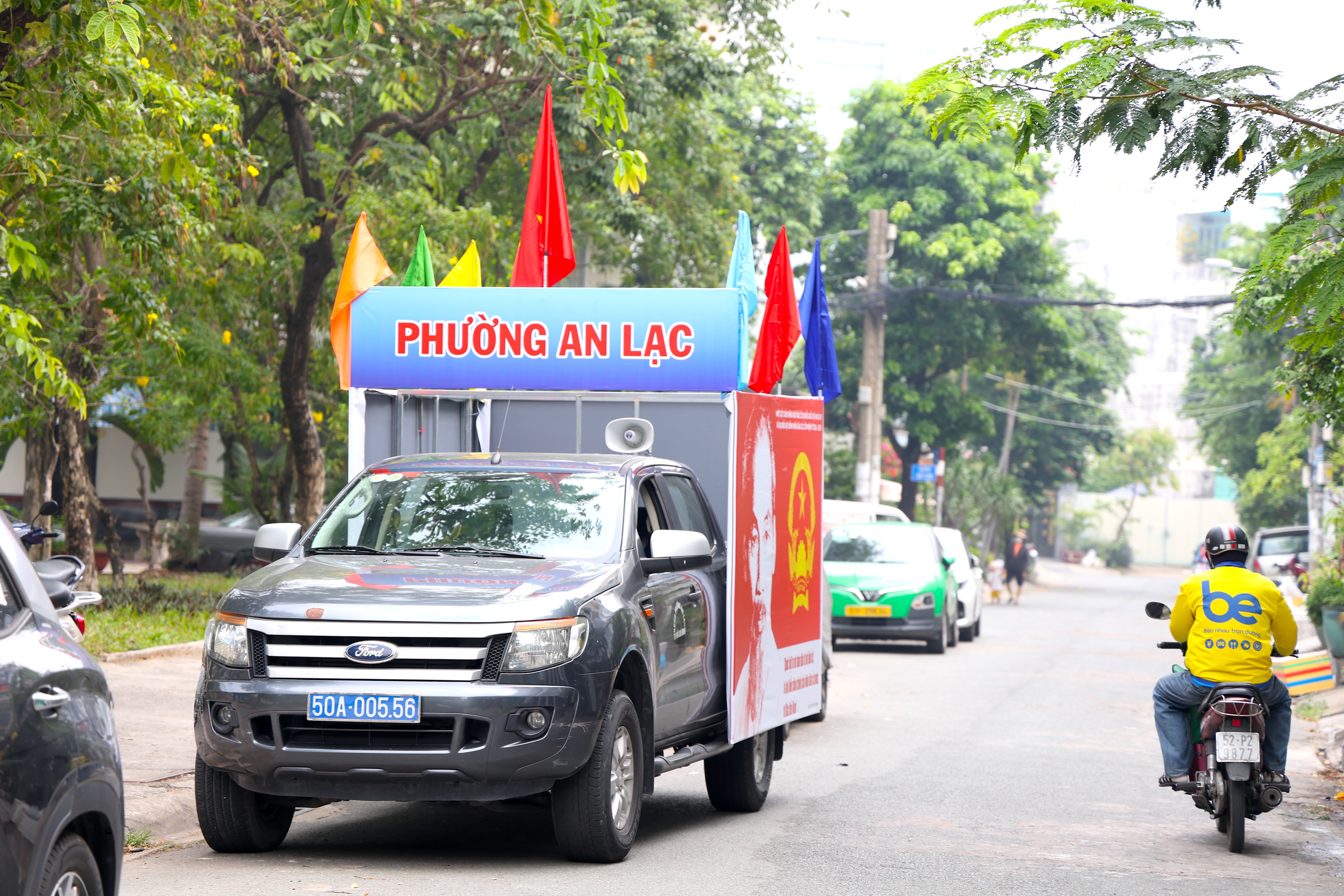 Những chiếc loa phường di động giúp công tác tuyên truyền bầu cử tại phường An Lạc hiệu quả hơn. Ảnh: LÊ THOA