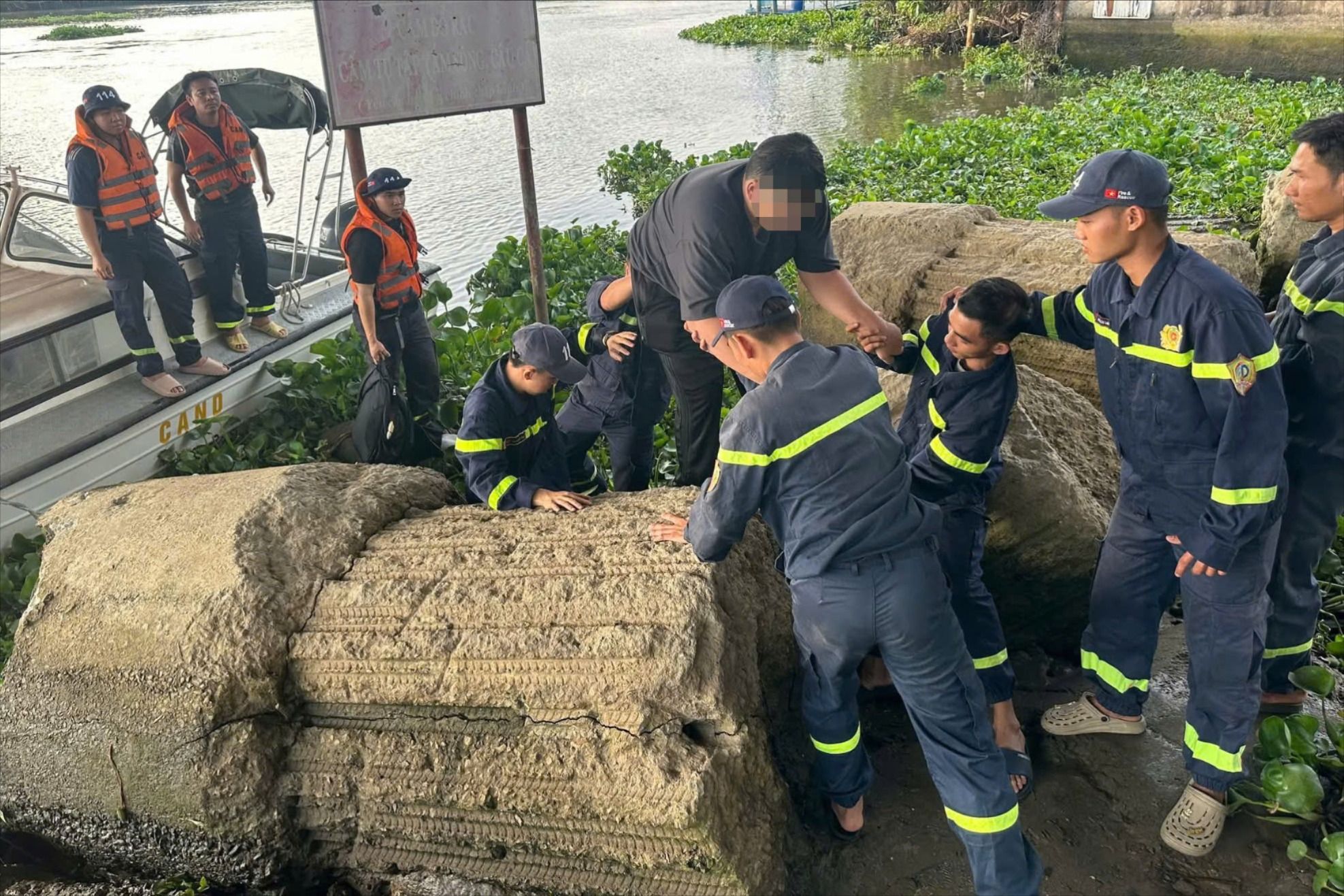 Ngay sau khi tiếp nhận tin báo, đơn vị đã điều động 1 xe chuyên dụng, 1 cano cùng 6 cán bộ, chiến sĩ nhanh chóng đến hiện trường. Đồng thời, đề nghị Đội Công tác Chữa cháy và cứu nạn cứu hộ (cơ sở 1) chi viện 1 xe chỉ huy, 1 xe chuyên dụng cùng 12 cán bộ, chiến sĩ phối hợp triển khai công tác cứu nạn.