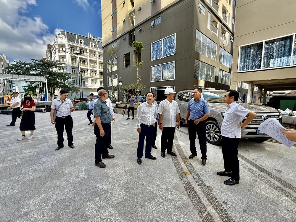 Đoàn đến khảo sát dự án nhà ở xã hội đường Lý Thường Kiệt, phường Diên Hồng. Ảnh: NGUYỄN CHÂU