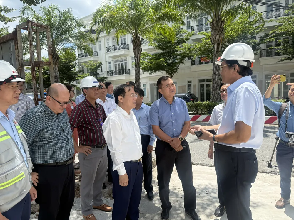 Đoàn khảo sát kiểm tra tiến độ dự án nhà ở xã hội - chung cư Phú Mỹ C2. Ảnh: NGUYỄN CHÂU