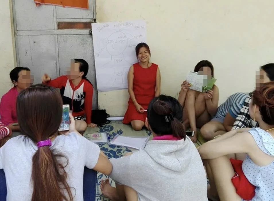 Buổi họp của CLB Sen Xanh dạy các chị em nhận diện khách để tự bảo vệ bản thân. Ảnh: NVCC