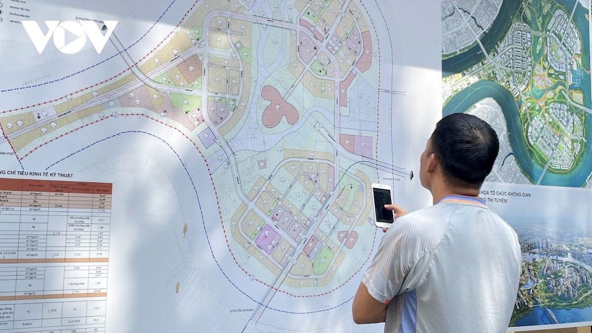 Người dân theo dõi bản đồ quy hoạch khu Thanh Đa - Bình Quới