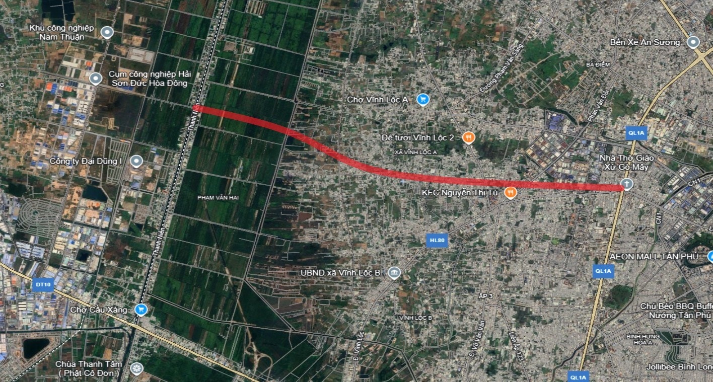 Theo phương án sơ bộ từ Sở Xây dựng, tuyến đường mở mới Tây Bắc có tổng chiều dài 9,9 km. Điểm đầu dự án bắt đầu từ đường Vành đai 2 TP HCM, đi qua khu công nghiệp Vĩnh Lộc (khu vực Bình Chánh cũ) và kết thúc tại điểm giáp ranh, đấu nối vào đường tỉnh 823D của tỉnh Tây Ninh. Trục đường được quy hoạch mở rộng từ 6 đến 8 làn xe.