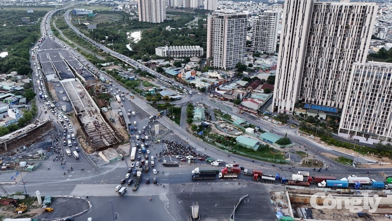 Cùng với đó, khẩn trương khắc phục hư hỏng mặt đường phạm vi dự án; nghiên cứu, tổ chức phương án phân luồng giao thông hợp lý tại khu vực, đặc biệt là bố trí điểm quay đầu xe phù hợp trên đường cao tốc (hướng từ cao tốc về trung tâm TP.HCM, khu vực gần đường Đỗ Xuân Hợp) trước khi vào nút giao chính để giảm tải, tránh ùn tắc tại nút; báo cáo Sở Xây dựng xem xét, quyết định.