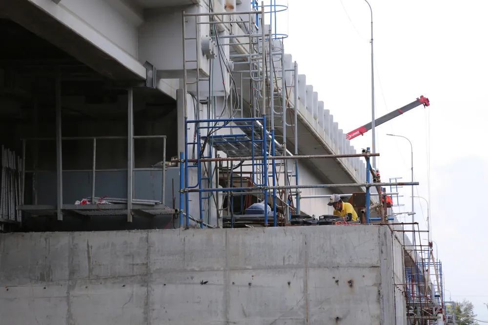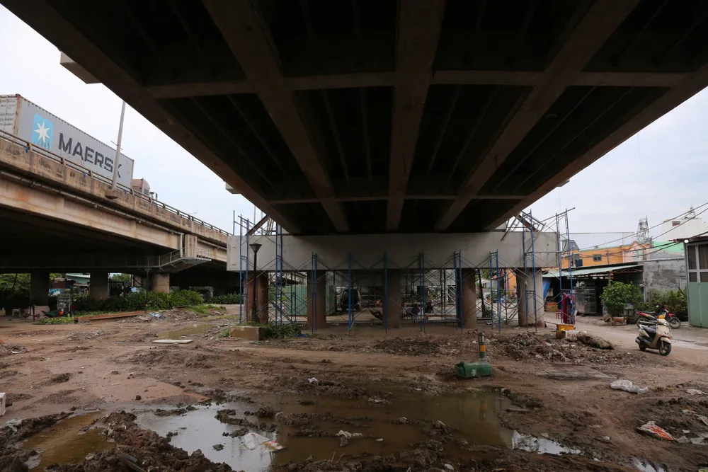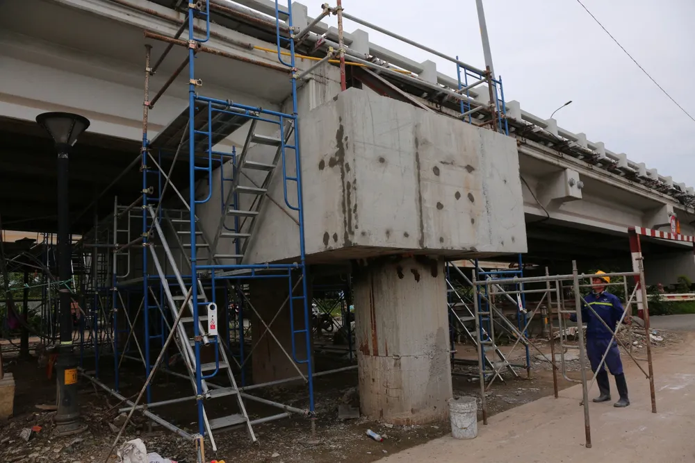 Hiện đơn vị thi công đang gấp rút hoàn thiện cầu tạm, bệ kích để chuẩn bị kích nâng cầu Bình Phước 1 lên thêm 1,25m.