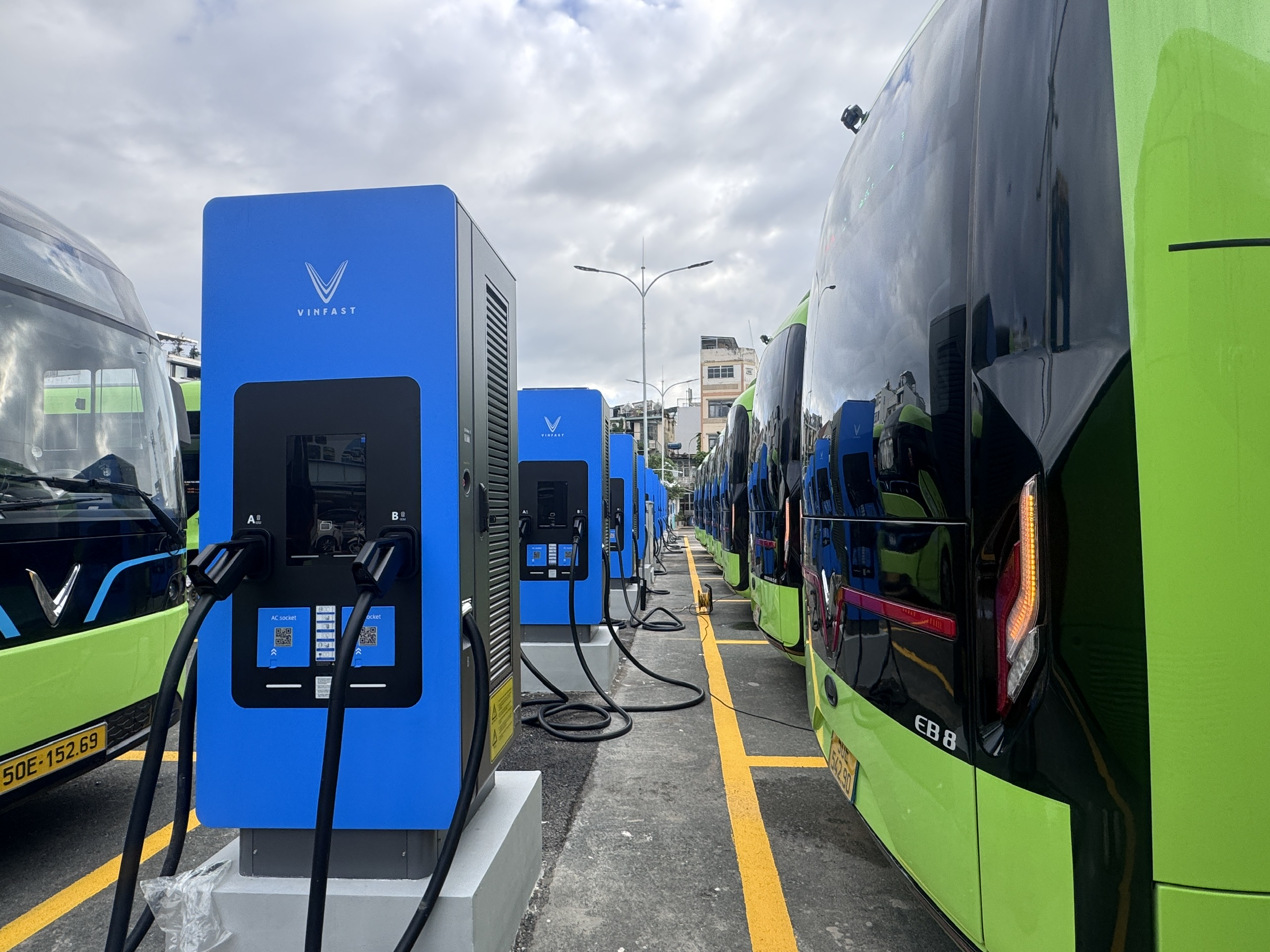 Dàn xe buýt điện mới của Vinbus đưa vào phục vụ người dân, nâng tỷ lệ phương tiện sử dụng năng lượng sạch tại TP.HCM lên gần 50%.