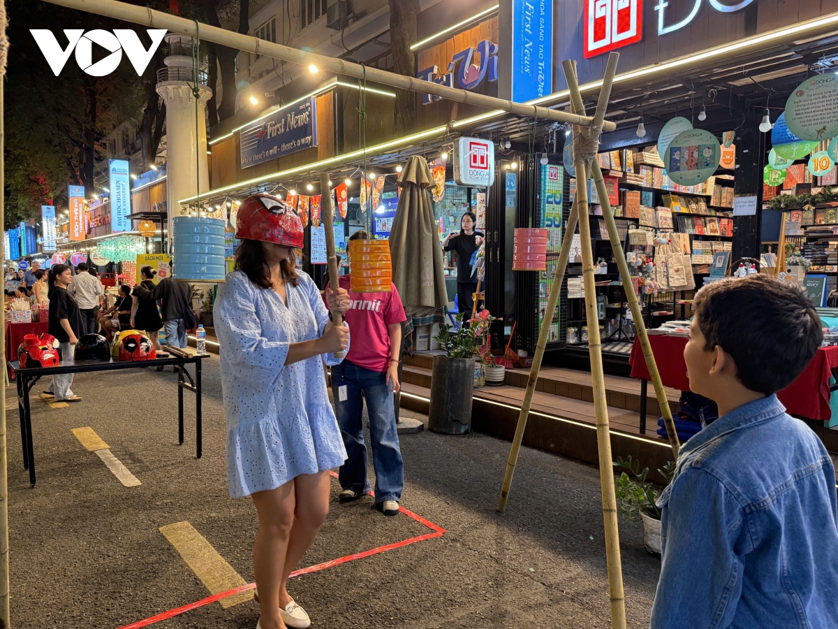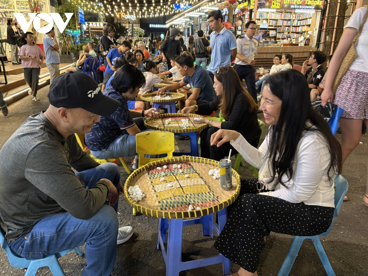 Du khách, người dân trải nghiệm trò chơi ô ăn quan ngay giữa Đường sách