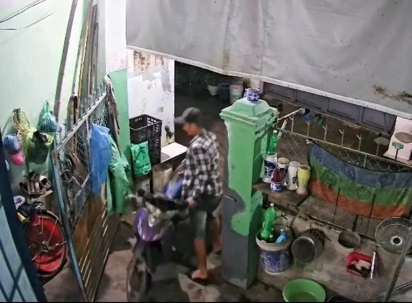 Hình ảnh Nguyên lấy trộm chiếc xe máy. Ảnh: CA