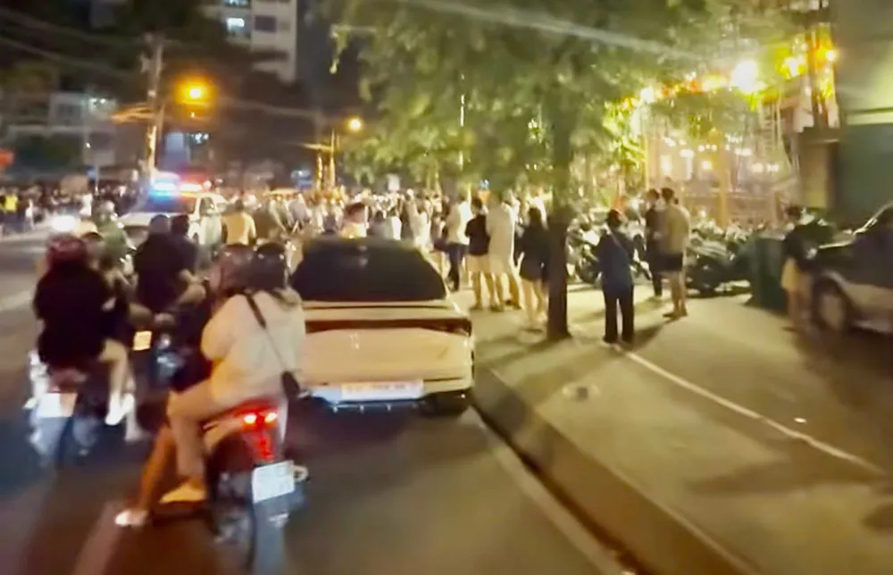 Người dân chứng kiến cho biết lúc xảy ra ẩu đả, họ nghe tiếng la hét, ly vỡ. Hàng trăm người dân hiếu kì đứng hai bên đường theo dõi vụ việc.