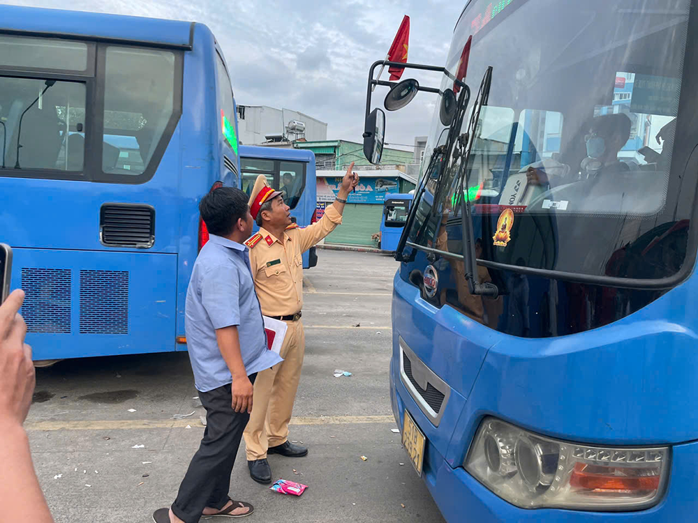 Thời gian qua, Đội CSGT An Sương đã tăng cường kiểm tra, xử lý nghiêm các phương tiện vận tải hành khách trên các tuyến quốc lộ, đường tỉnh và khu vực bến bãi nhằm hạn chế tai nạn giao thông.