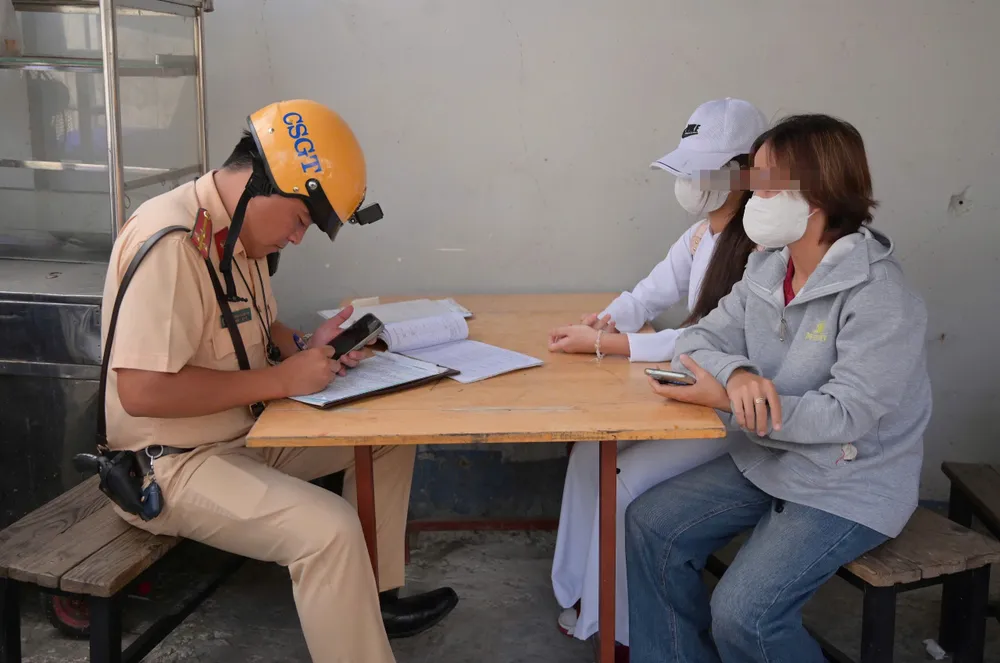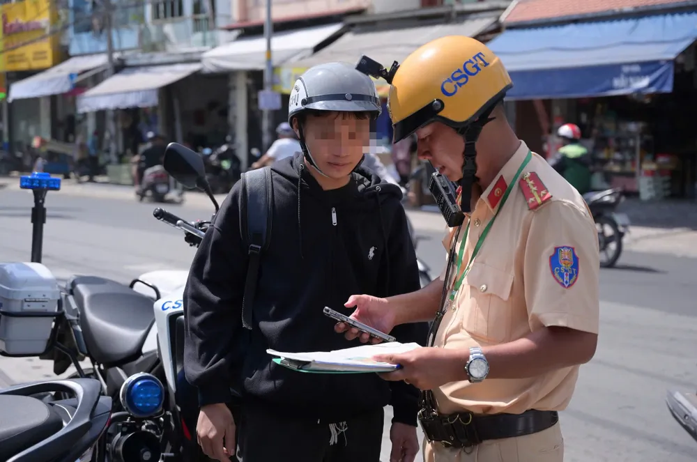 Khoảng 20 phút sau, TQĐ (17 tuổi, học sinh trường trung học phổ thông trên địa bàn) cũng bị lập biên bản khi chạy xe máy không đội mũ bảo hiểm tại giao lộ Phạm Văn Bạch – Tân Sơn.