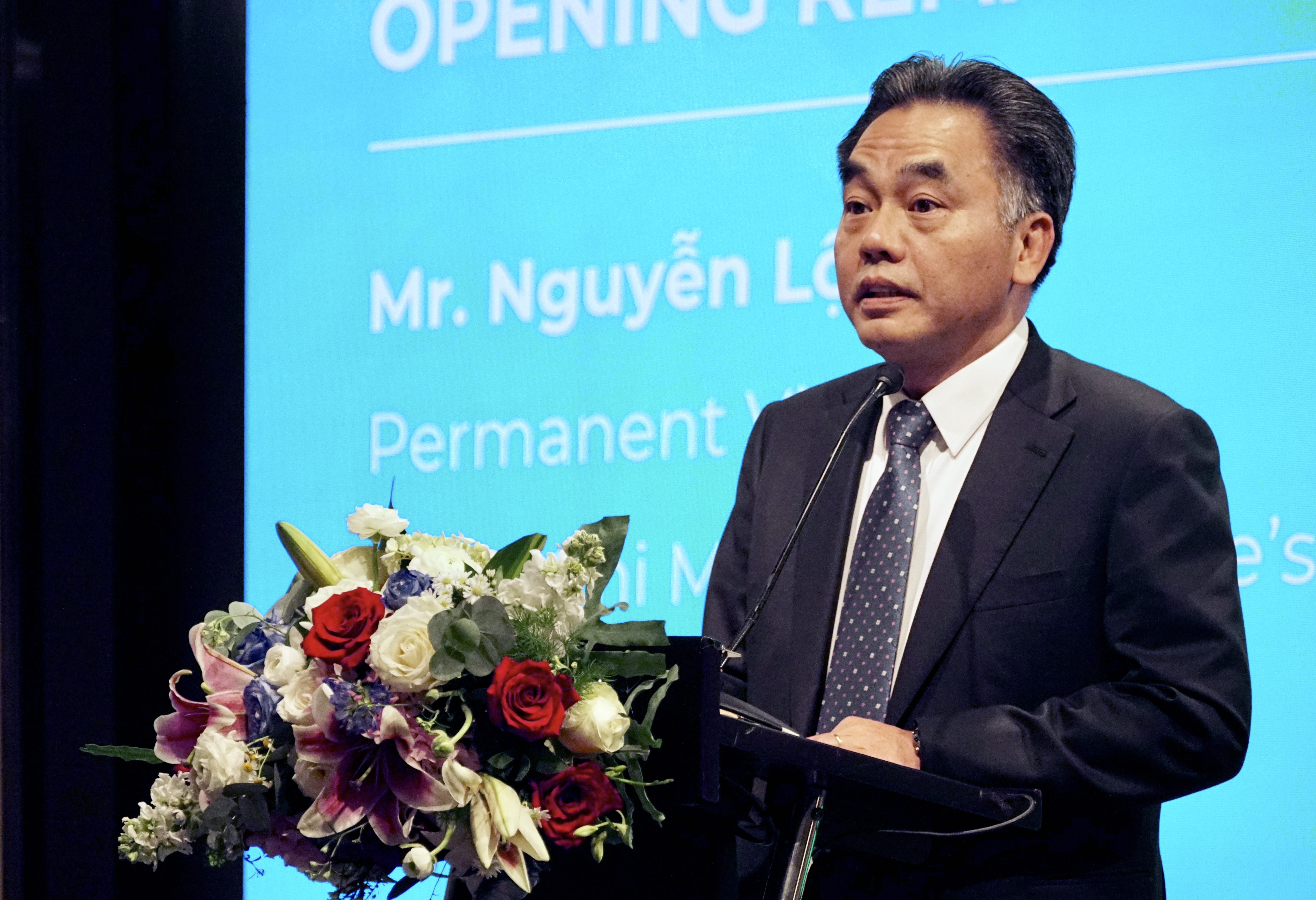 Ông Nguyễn Lộc Hà, Phó Chủ tịch Thường trực UBND TP.HCM, phát biểu tại Hội nghị mở Vương quốc Anh - Việt Nam về Trung tâm Tài chính Quốc tế (IFC) đã diễn ra tại TP.HCM ngày 25-3. Ảnh: DƯƠNG KHANG