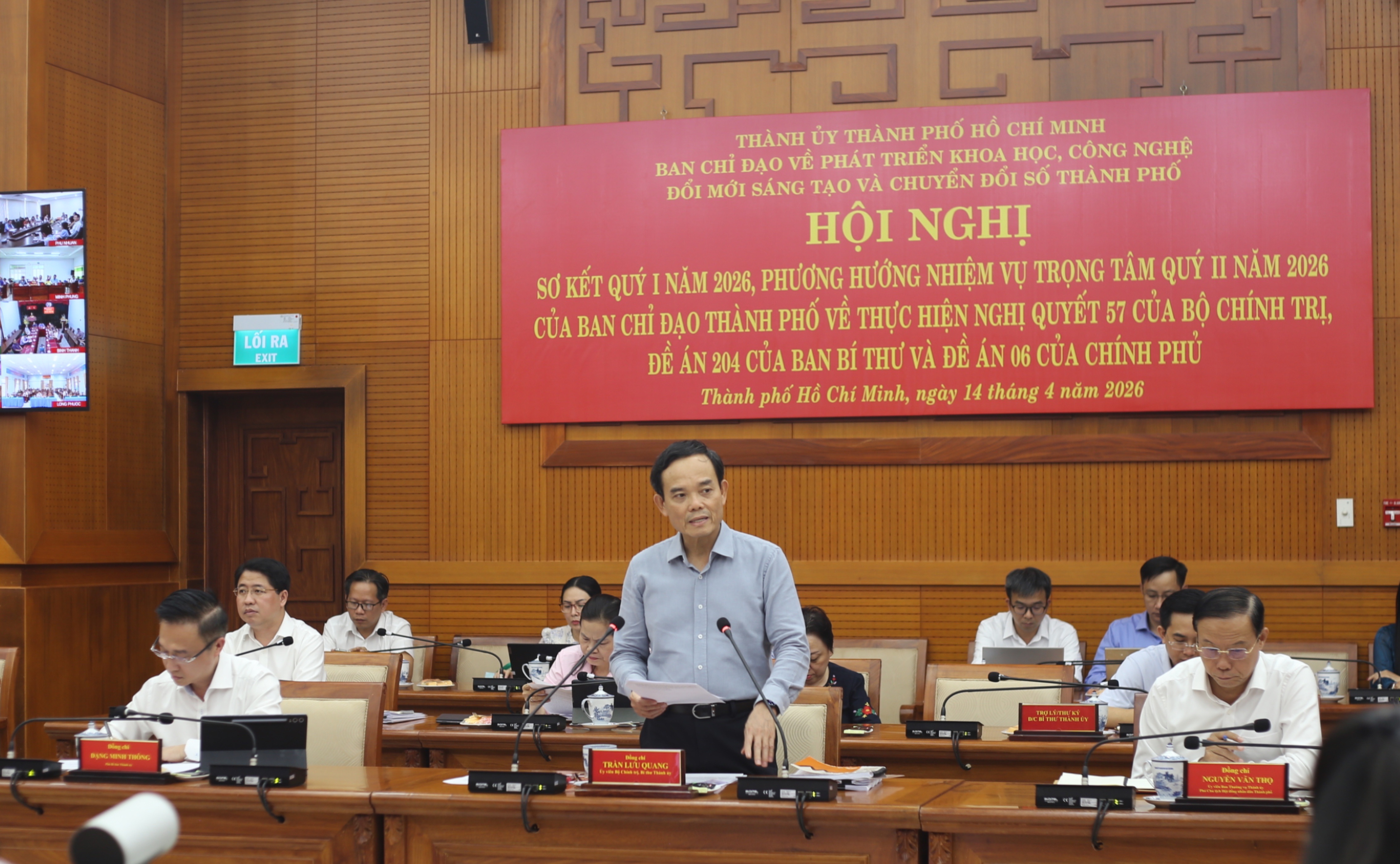 Chiều 14-4, Ban chỉ đạo phát triển về khoa học công nghệ, đổi mới sáng tạo và chuyển đổi số TP.HCM tổ chức sơ kết quý I-2026, phương hướng, nhiệm vụ trọng tâm quý II-2026 về thực hiện Nghị quyết 57 của Bộ Chính trị, Đề án 204 của Ban Bí thư và Đề án 06 của Chính phủ.