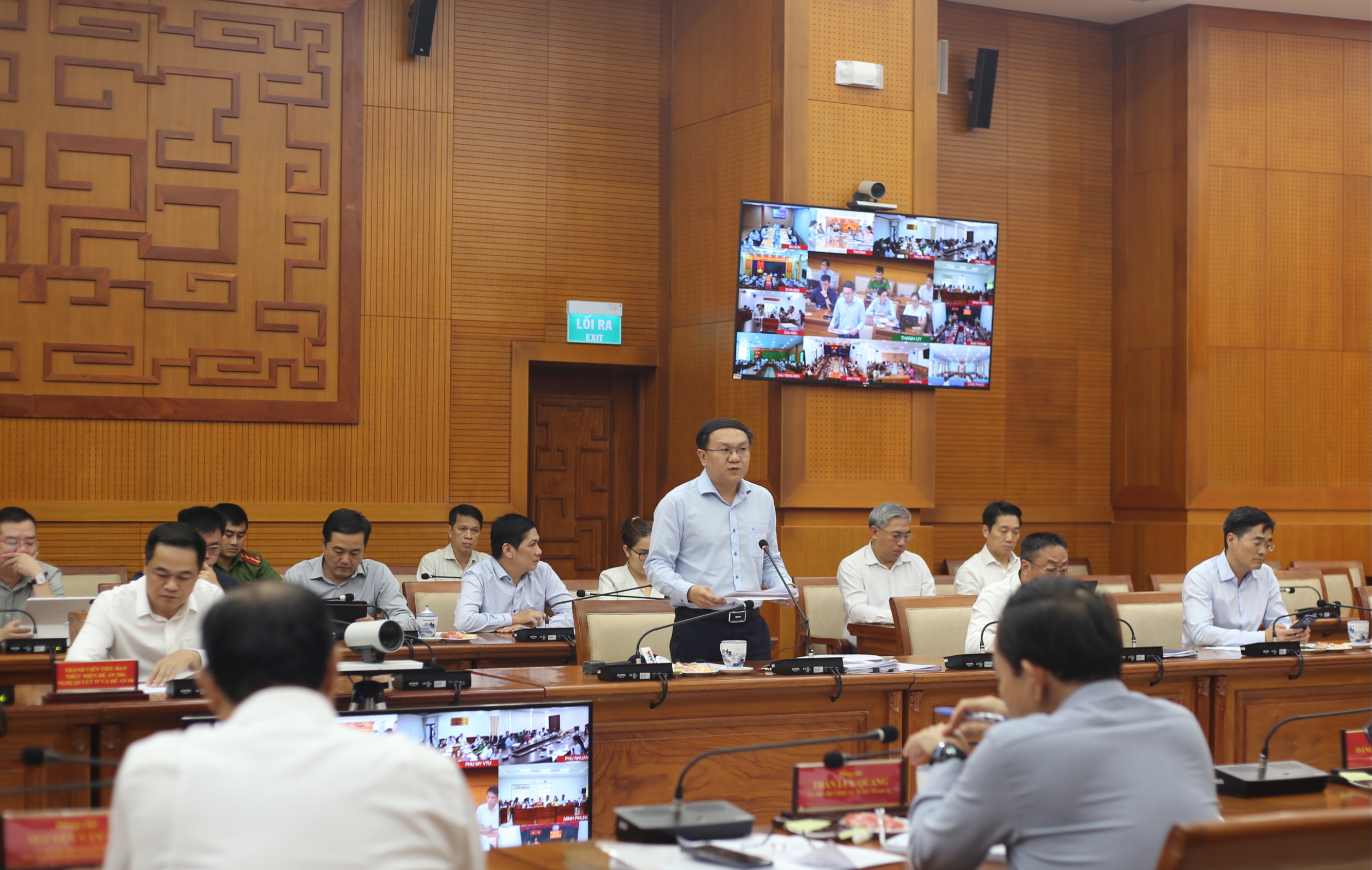 Phó Chủ tịch UBND TP.HCM Nguyễn Mạnh Cường báo cáo tại hội nghị. Ảnh: THANH TUYỀN