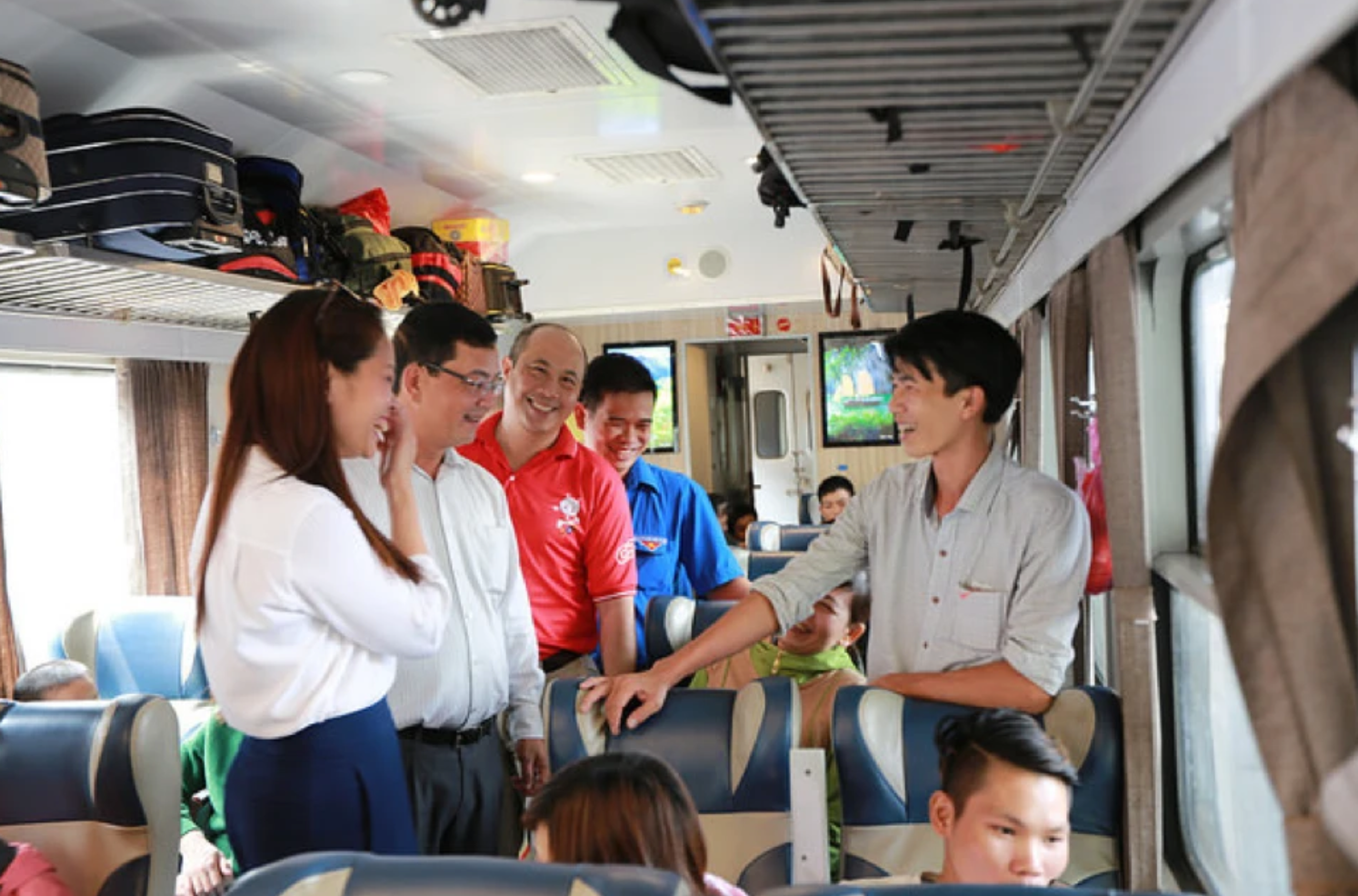 Đi kèm mỗi vé tàu là một suất quà trị giá 300.000 đồng bằng tiền mặt. Các chuyến tàu xuất phát từ ga Sài Gòn, ga Dĩ An (TP.HCM) và ga Biên Hòa (Đồng Nai), đưa người lao động về các ga phía Bắc, từ Đà Nẵng trở ra Hà Nội.