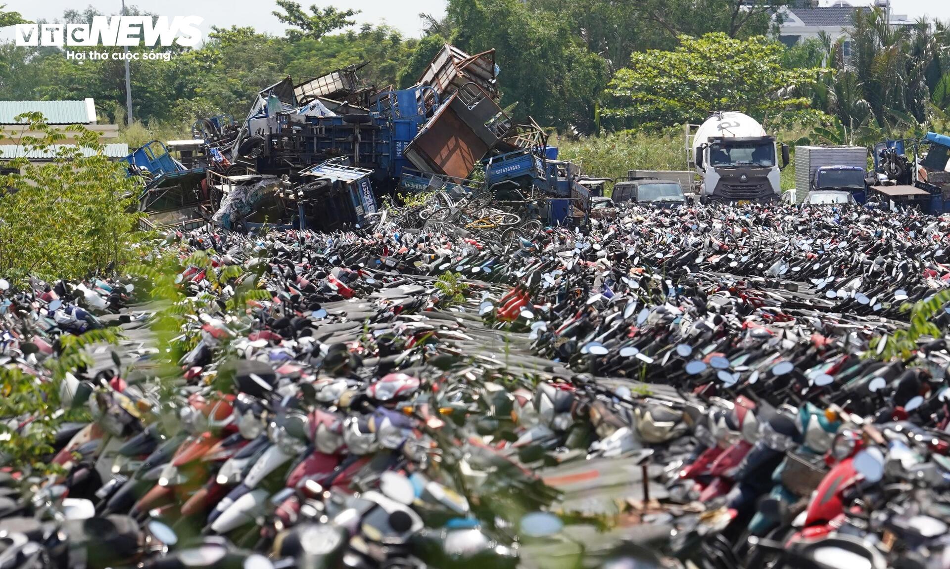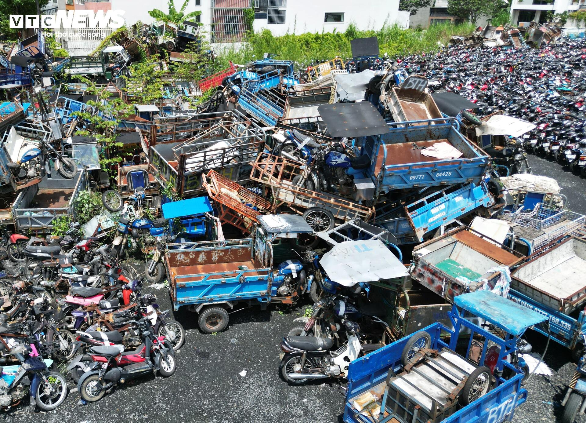 Các phương tiện này được chất thành từng “núi” tại bãi tạm giữ tang vật, phương tiện vi phạm hành chính khu Sha T30 (xã Nhà Bè).
