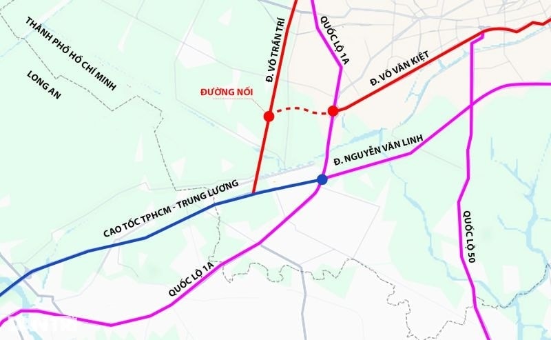 Đường Võ Văn Kiệt giao với Quốc lộ 1. Ảnh: Báo Công Lý