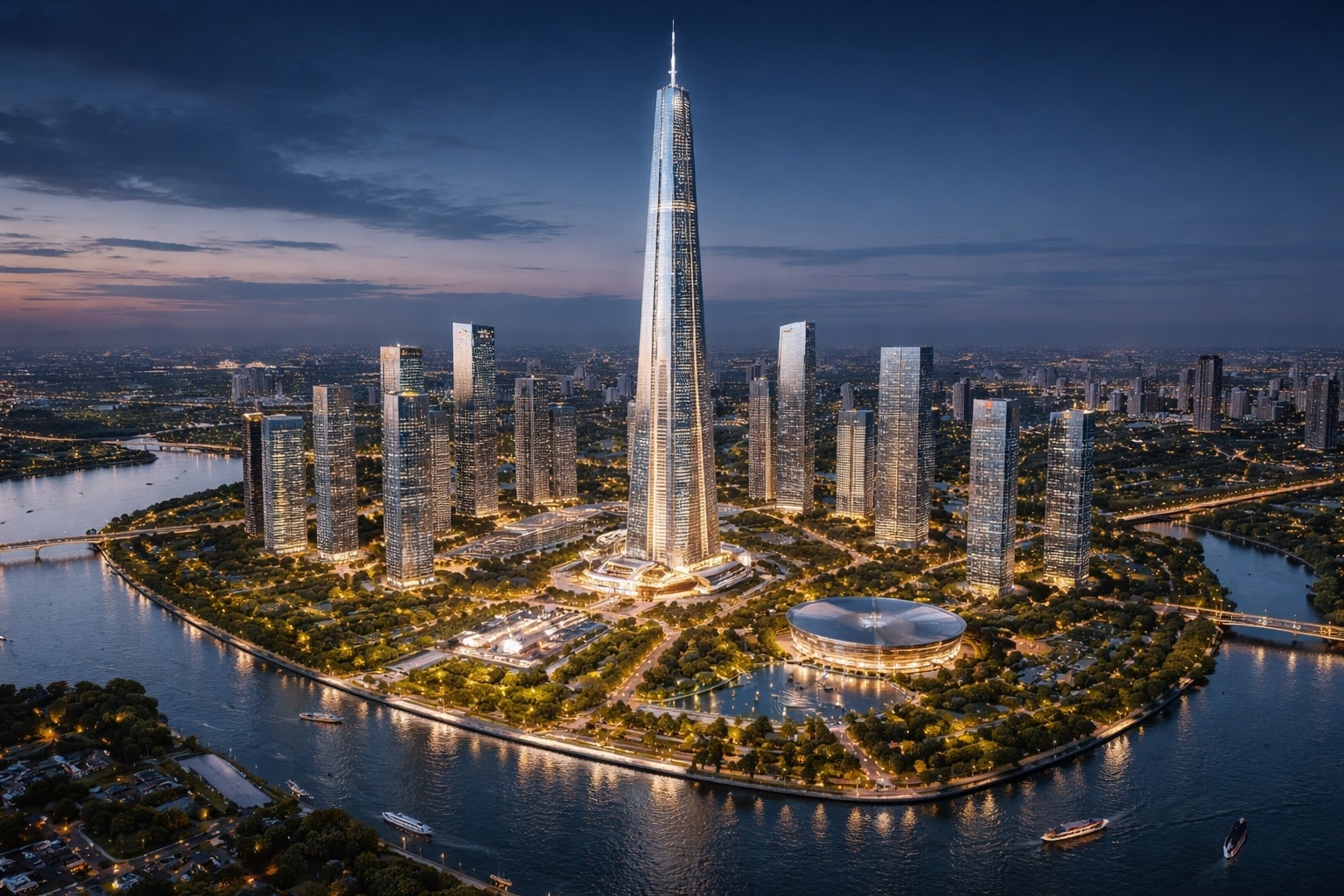 Công trình được quy hoạch trên khu đất khoảng 10.000m2, với 99 tầng nổi và 5 tầng hầm. Ảnh minh họa