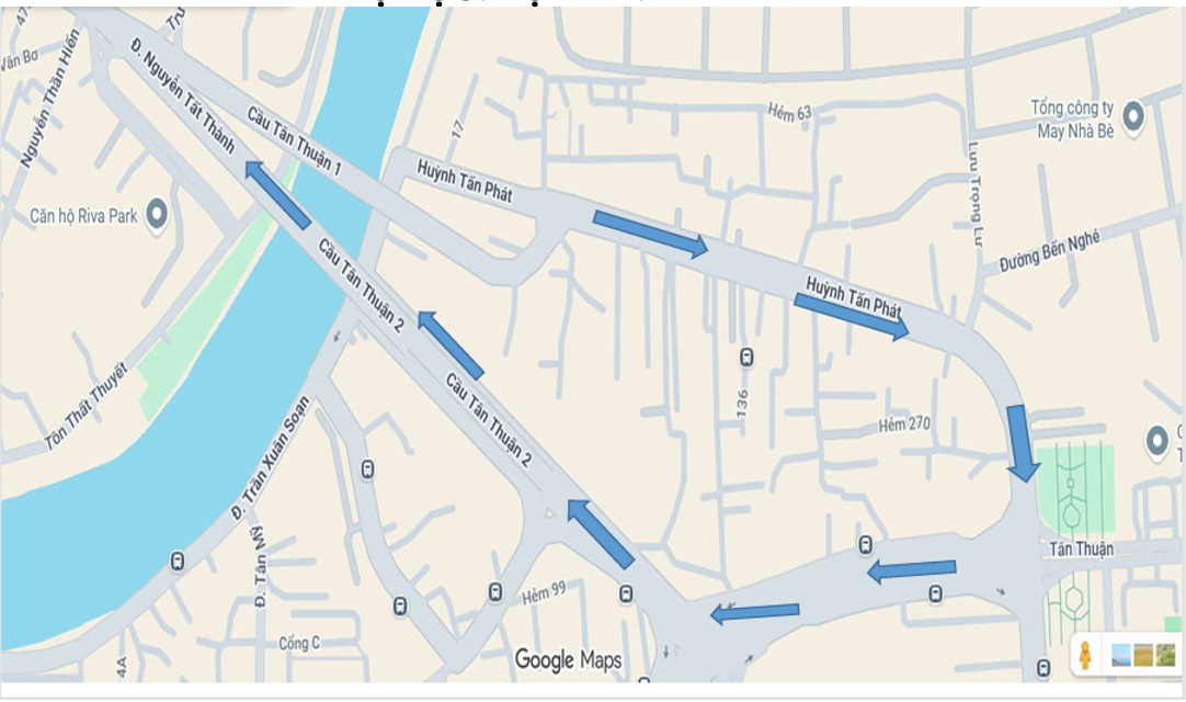 Lộ trình 2: Huỳnh Tấn Phát -Trần Xuân Soạn - Nguyễn Thị Xiếu - cầu Tân Thuận 2 - Nguyễn Tất Thành.