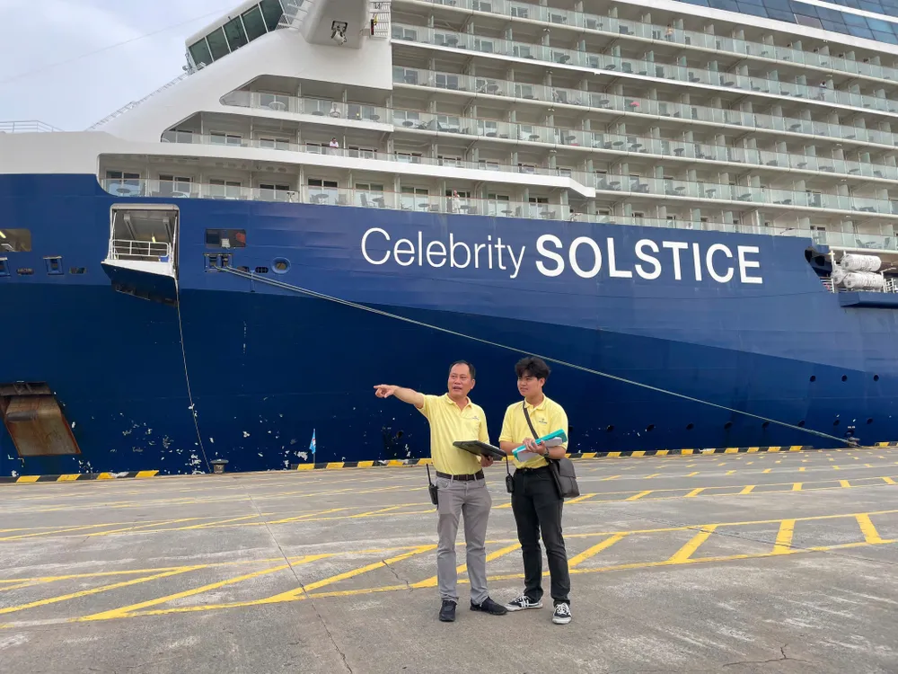Khoảnh khắc tàu Celebrity Solstice cập cảng Phú Mỹ sáng 10-11, đánh dấu sự ổn định trở lại của du lịch tàu biển TP.HCM.