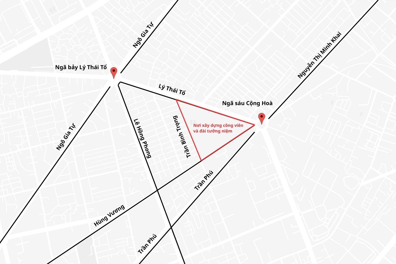 Khu đất số 1 Lý Thái Tổ với vị trí trung tâm, nằm giữa ba mặt tiền Lý Thái Tổ - Hùng Vương - Trần Bình Trọng. Bên trong khuôn viên nhiều cây xanh cổ thụ là 7 biệt thự cổ kiểu Pháp từng thuộc gia đình chú Hỏa - “Vua nhà đất” Sài Gòn xưa. Công trình đang được dọn dẹp để xây dựng công viên và đài tưởng niệm, dự kiến hoàn thành trước Tết Nguyên đán 2026.