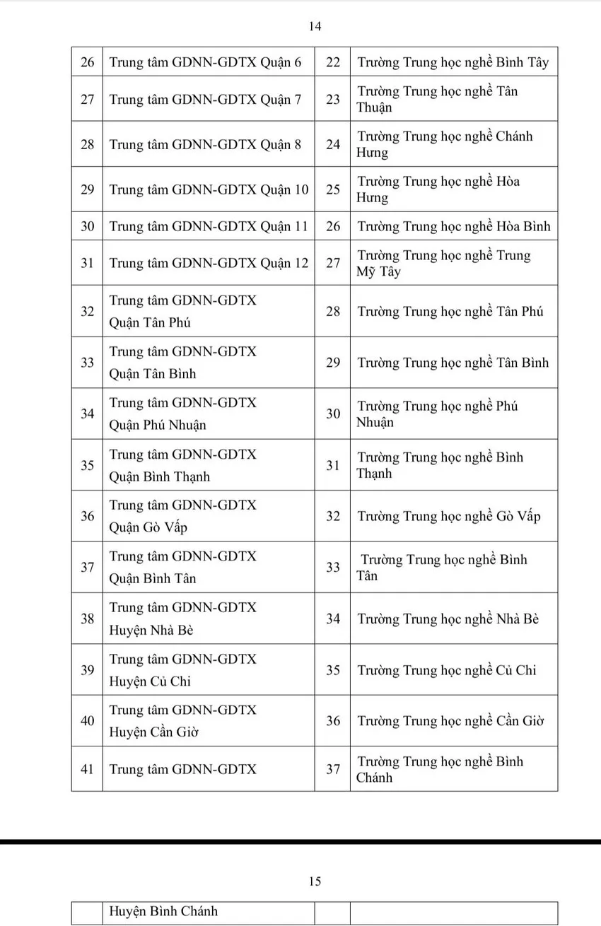 Dự kiến phương án chuyển đổi, sáp nhập các trung tâm giáo dục thường xuyên, nghề nghiệp thành trường trung học nghề của TP.HCM như sau: