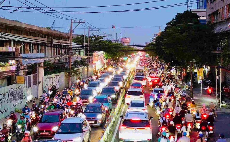 Đường Nguyễn Tất Thành hiện nay thường xuyên xảy ra ùn tắc giao thông - Ảnh: M.Q