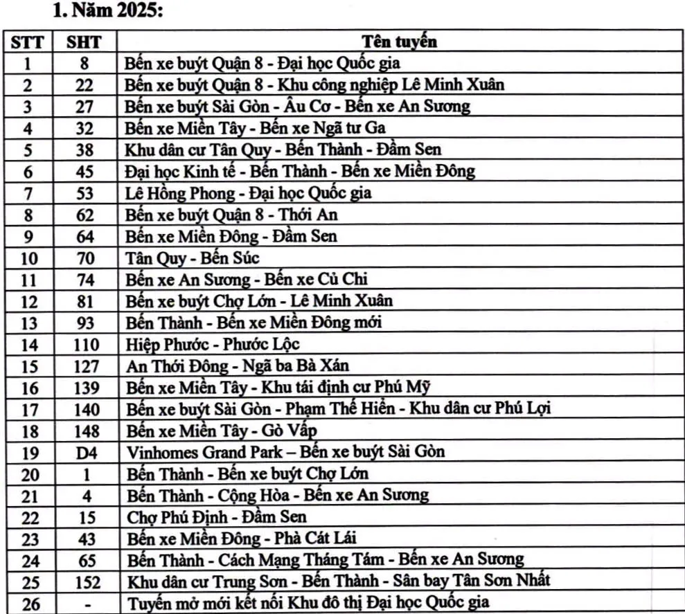Năm 2026, dự kiến tiếp tục triển khai chuẩn bị tổ chức đấu thầu theo tiến độ đối với các tuyến xe buýt được hỗ trợ kinh phí đang hoạt động hiện hữu theo hình thức đặt hàng