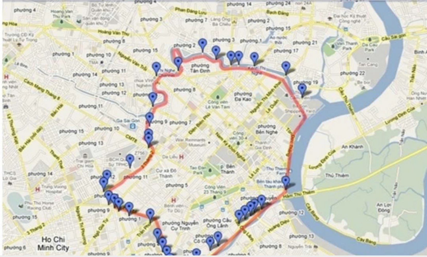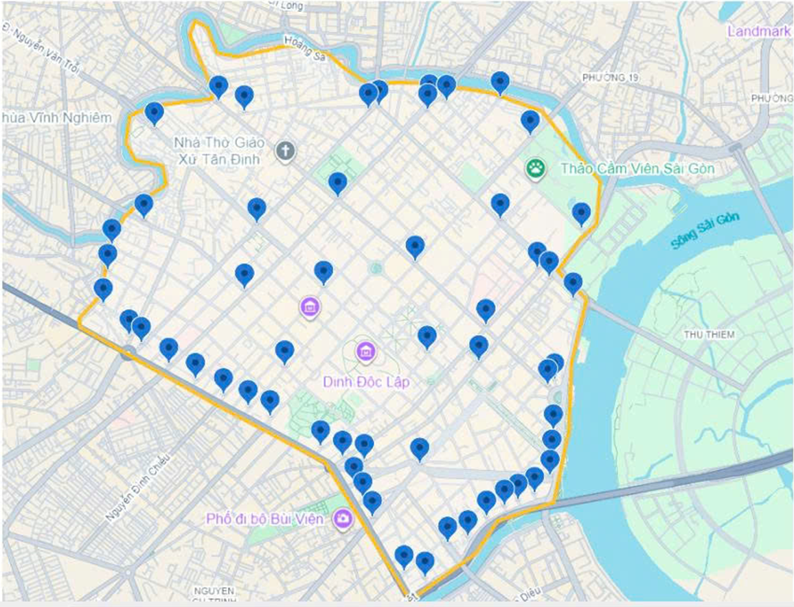 Khu vực thí điểm vùng phát thải thấp tại trung tâm TP.HCM giới hạn bởi 15 cây cầu và 17 tuyến đường. (Nguồn: TTQLGTCC)