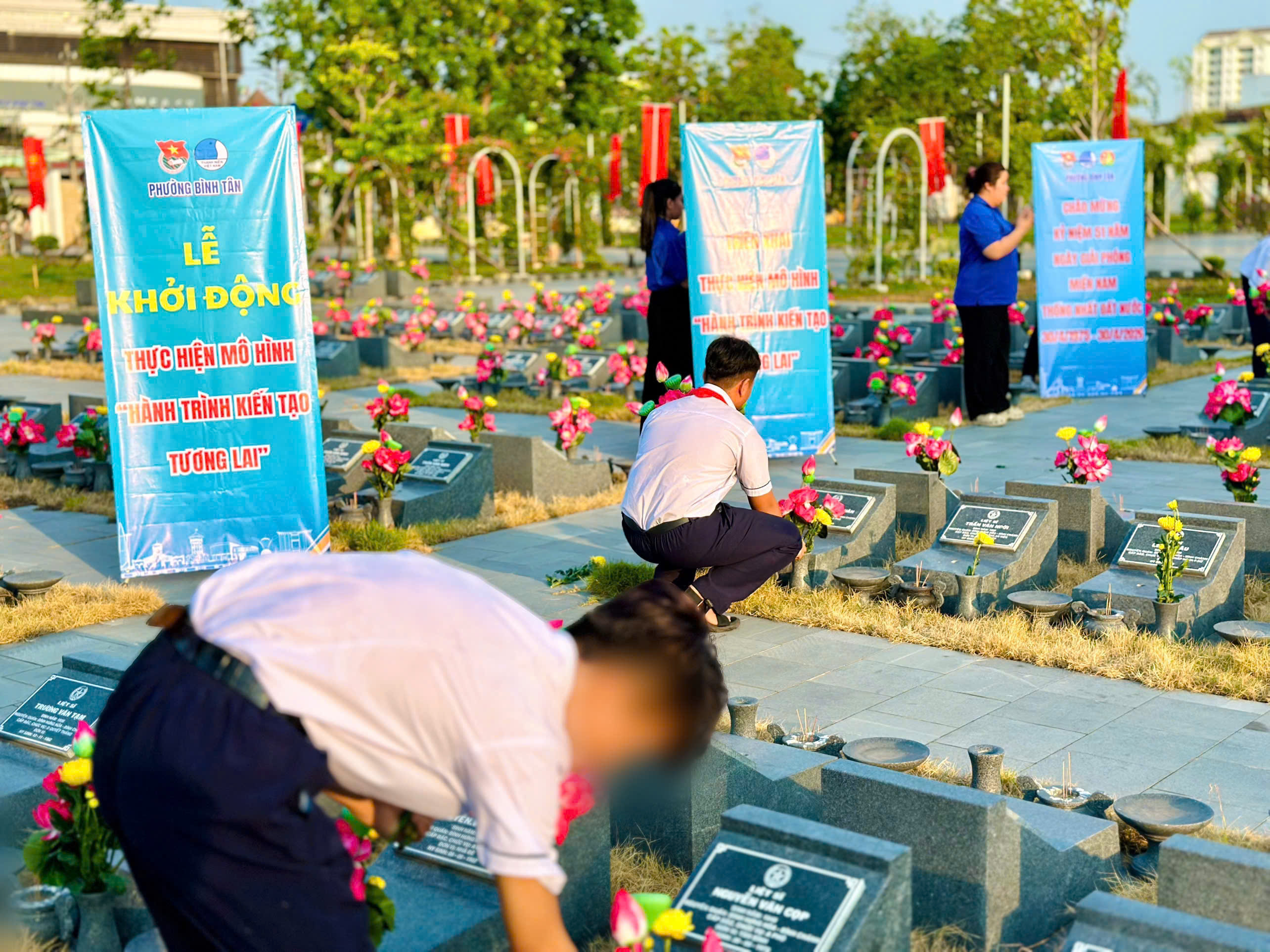 Chiều 23-4, tại Nghĩa trang liệt sĩ Bình Chánh – Bình Tân, Ban Thường vụ Đoàn phường Bình Tân, TP.HCM, đã tổ chức Lễ khởi động triển khai thực hiện mô hình “Hành trình kiến tạo tương lai” giai đoạn 1 và thực hiện “Ngày lao động Chủ nghĩa xã hội”.