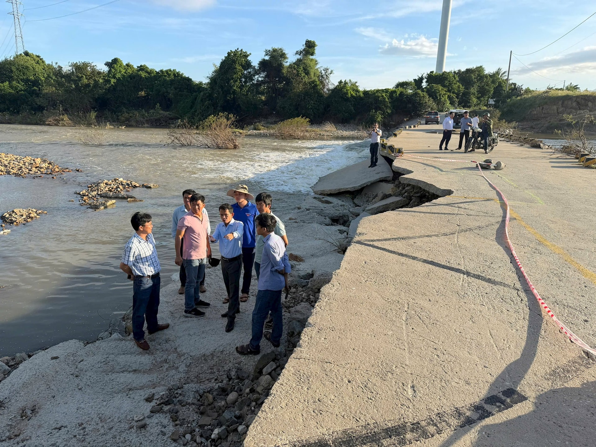 Trong ngày làm việc đầu tiên, đoàn khảo sát tại xã Tây Khánh Vĩnh, nơi tuyến đường Hòn Dù và đường vào cầu Gia Lố bị hư hại nghiêm trọng. Hai đầu cầu bị đứt đường, lan can và mặt đường bê tông bị cuốn trôi. Đoàn đề xuất giải pháp gia cố mố cầu, sửa chữa lan can, phục hồi mặt đường và hệ thống thoát nước nhằm bảo đảm an toàn giao thông.