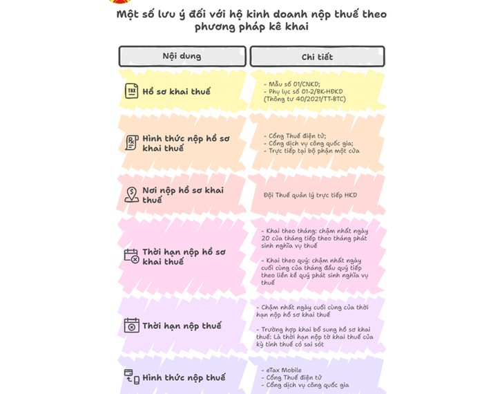 Cụ thể, hộ kinh doanh nộp hồ sơ khai thuế tại Cổng Thuế điện tử theo địa chỉ https://thuedientu.gdt.gov.vn phân hệ "CÁ NHÂN"; Cổng dịch vụ công quốc gia https://dichvucong.gov.vn