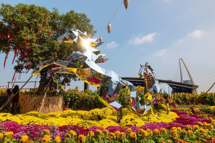 Công viên hoa bên sông Sài Gòn trang trí ấn tượng thu hút đông khách vui chơi, chụp hình mỗi ngày.