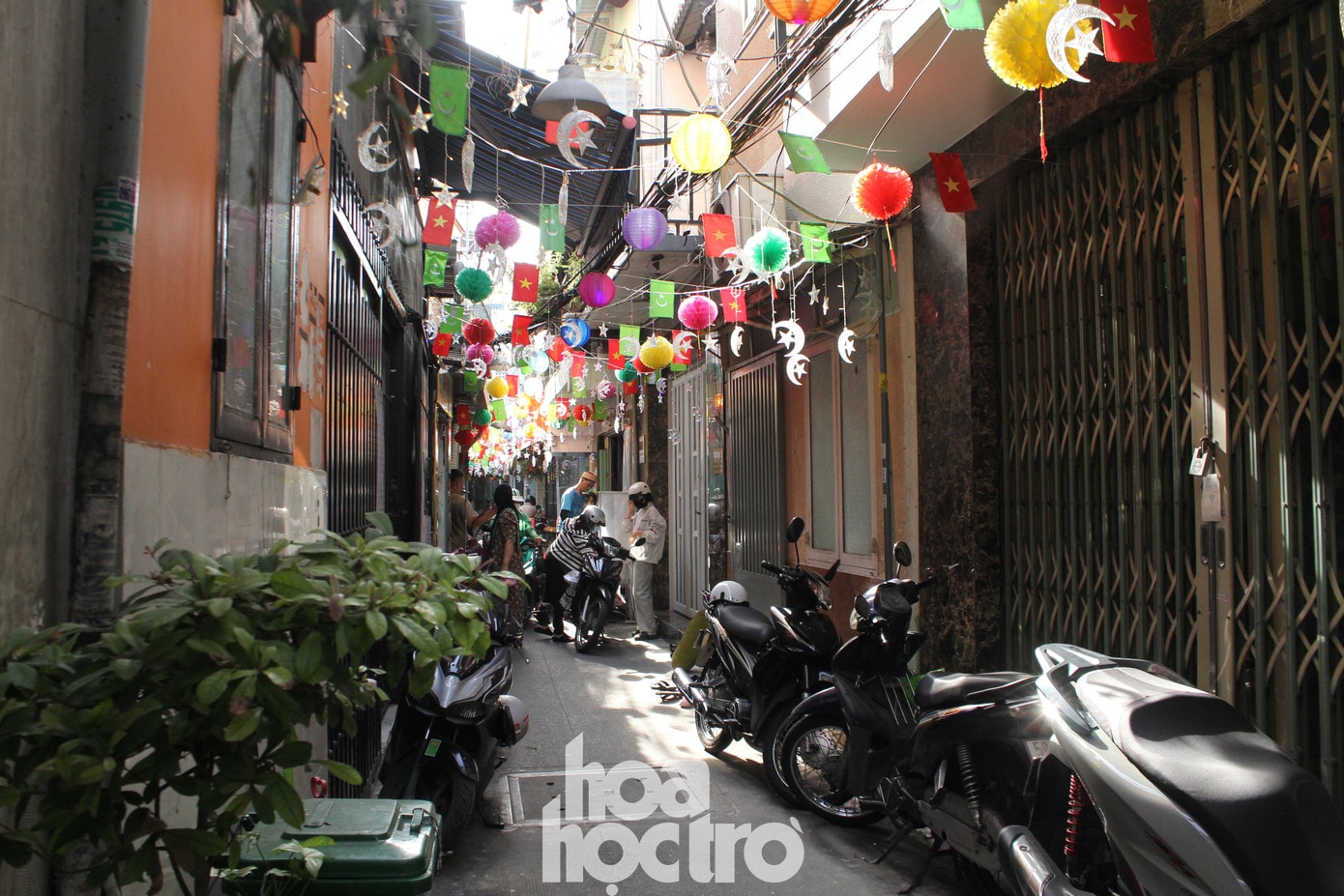 Khu vực hẻm nhỏ được trang trí đầy sắc màu và các vật trang trí biểu tượng của đạo Hồi.