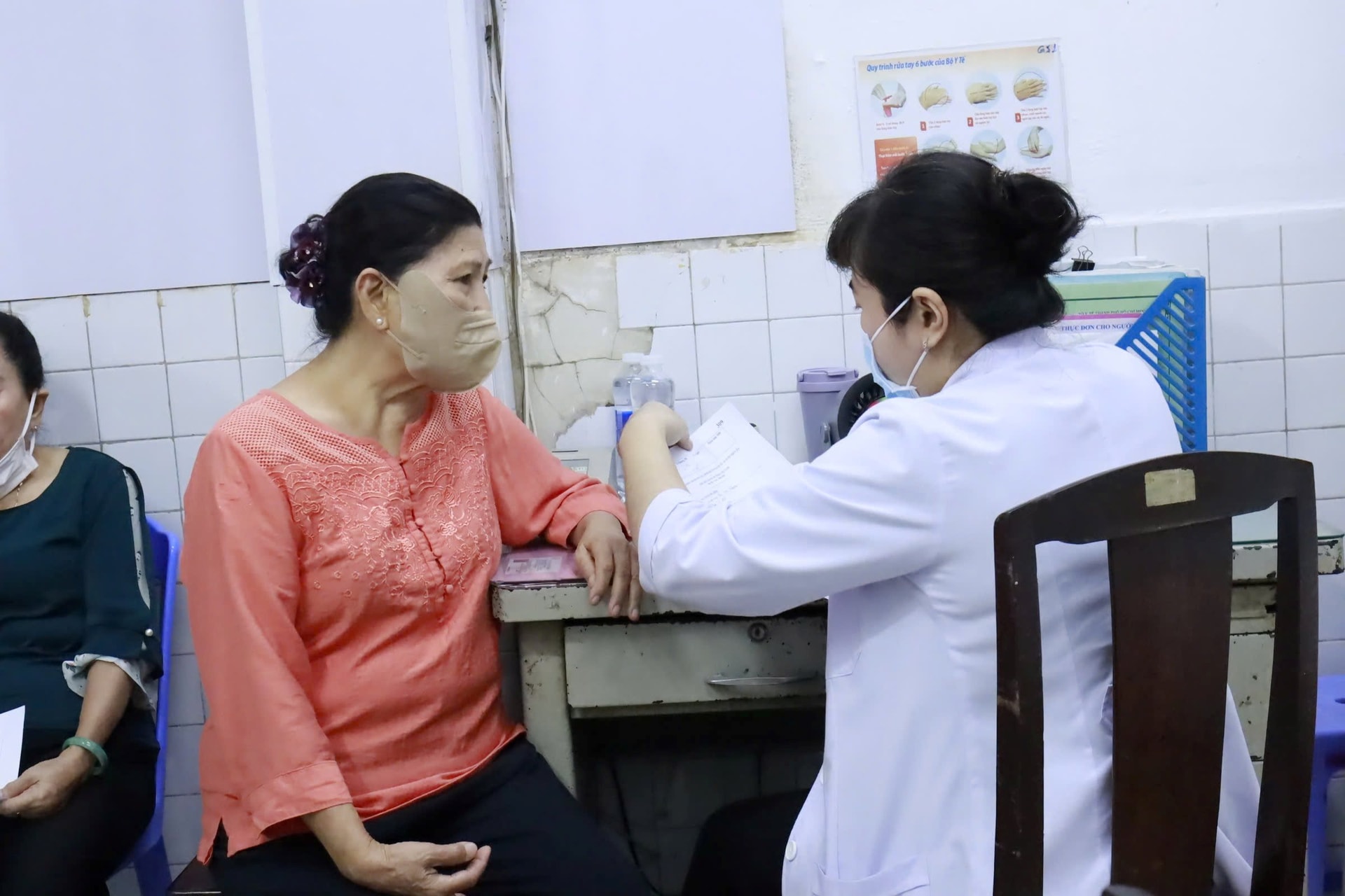 Bác sĩ khám sức khỏe miễn phí cho người cao tuổi.